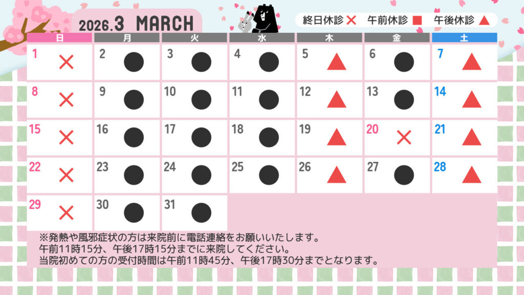 3月の診療カレンダー